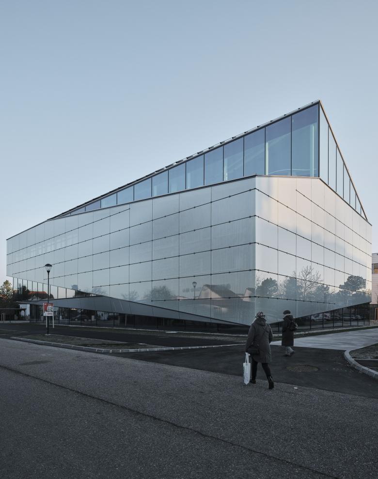 Über den Hauptzugang an der Ecke gelangt man in das großzügige dreigeschoßige, natürlich belichtete Foyer. Dieses bildet den vertikalen Zentralbereich des Hauses. Von ihm aus gelangt man in den angrenzenden Showroom, in die FH im Westen, in den erdgeschoßigen Restaurantbereich oder in die Obergeschoße bzw. in das Untergeschoß. Im 1.OG befindet sich der Start‐up bzw. Co‐Working Bereich, im 2.OG ist die Fachhochschulerweiterung untergebracht. Ein attraktiver Meeting‐Bereich „schwebt“ über dem Showroom und gewährt attraktive Ausblicke in die Umgebung.