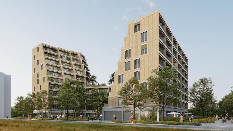 Mit dem Wohnbau ÖBB Neues Landgut soll ein einheitliches, identitätsstiftendes Ensemble zweier miteinander verbundener Volumen um einen Hof etabliert werden, das einerseits in die Umgebung eingebettet liegt, andererseits aber auch starke wohnbezogene Qualitäten aufweist, um zukünftigen BewohnerInnen ein gutes Leben zu ermöglichen. Durch den Grundrisszuschnitt und durch die hofseitig nach oben rückspringende Abtreppung der Baukörper entsteht eine Geste der Öffnung nach Süden und eine Geste der Öffnung nach oben. Die Öffnung nach Süden ermöglicht eine Einbindung des Wohnensembles in das umgebende Umfeld. Die Öffnung nach oben führt zu qualitativ hochwertigem natürlichen Lichteintrag in die unteren Bereiche und in den Hof und damit zu einer hohen Aufenthaltsqualität des Hoffreibereichs.