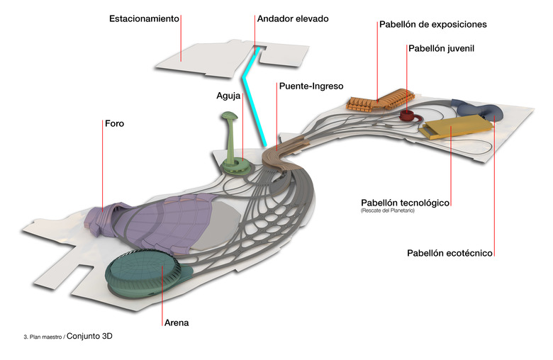 El proyecto se organiza espacialmente en dos grandes burbujas programáticas, la primera de eventos masivos y espectáculos, la segunda de programas educativos y exposiciones.