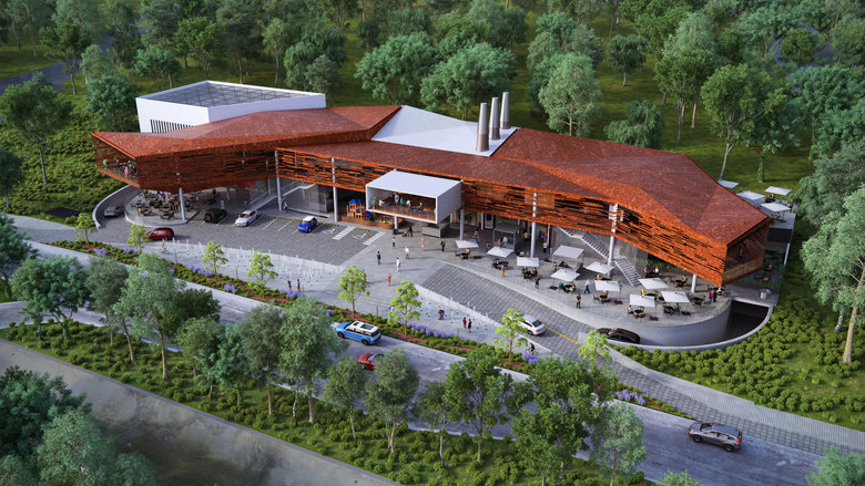 The WP Convenience Center is part of a larger mix use complex of 8 towers of luxury residence. Due to its front side location within the complex, the project acts as the facade and icon to the development granting an identity and presence to the complex within the urban context. The WP Convenience Center was designed taking into consideration the elevated views of the neighboring residential towers as much as the views from the street, it was an imperative condition to treat the roof of the building as a fth facade, therefore the material chosen for the roof and the rest of the raised volume of the project is Cor Ten Steel, a material that will age graciously.