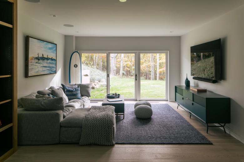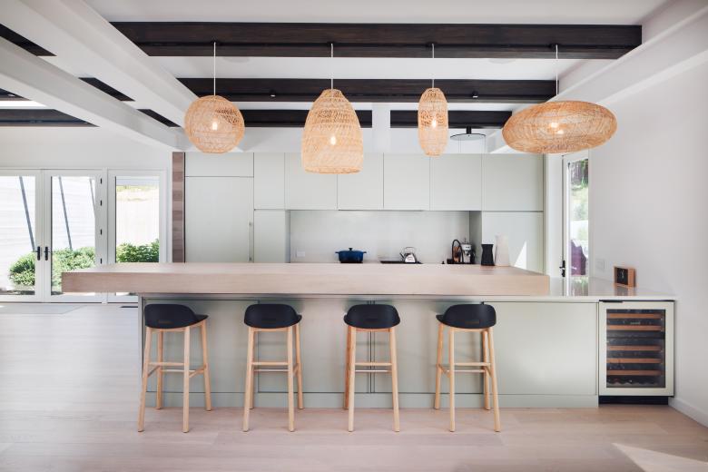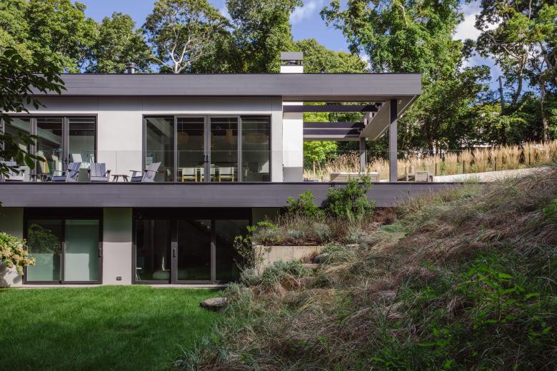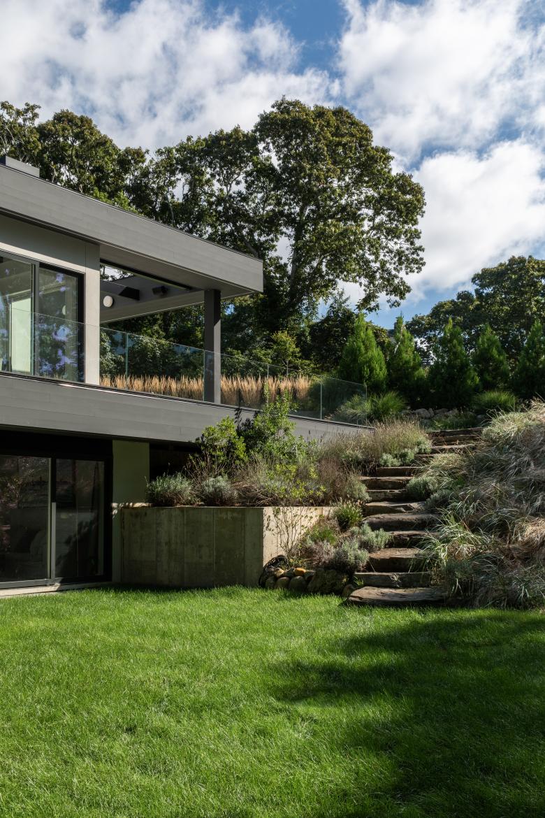 Engineered and natural materials create a plateau allowing for indoor and outdoor spaces to come together in a natural rhythm, blending public and private living. Nestled into the hillside, the private lower-level slips into the landscape, where one can view the fern forest. Above, a raised infinity pool carves into the earth. Tying the two levels together is a material palette of shou sugi ban, dark metal, glass, exposed concrete, and fine stucco. Deftly layered, they help to create a synthesized composition and form.