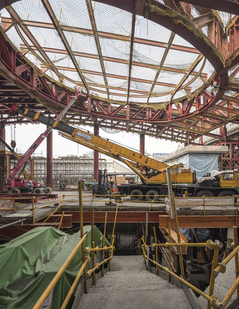 The colonial Japanese station building, which will be relocated to its original site, is embraced by the canopy and symbolically reconnects the old and new Kaohsiung.