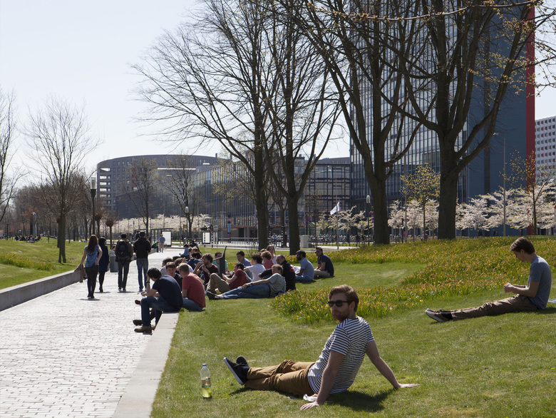 The busy Mekel Road, which divided the campus of the Delft University of Technology (TU Delft), is replaced by the eye-catching Mekel Park. Centrally located, the park connects the various faculties of the TU Delft, and in doing so, reflects the interdisciplinary character of the university.
