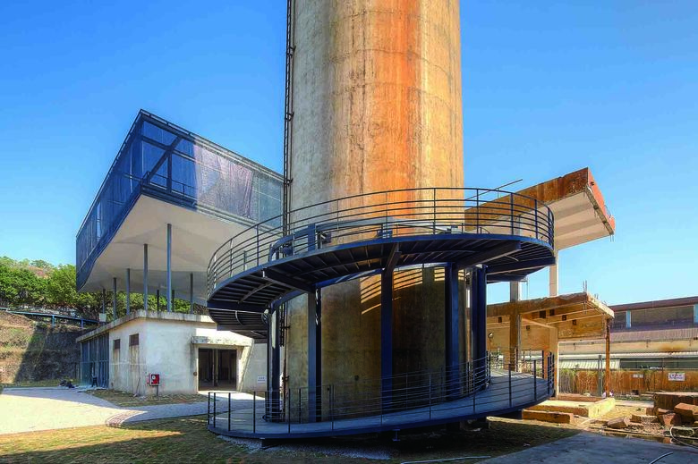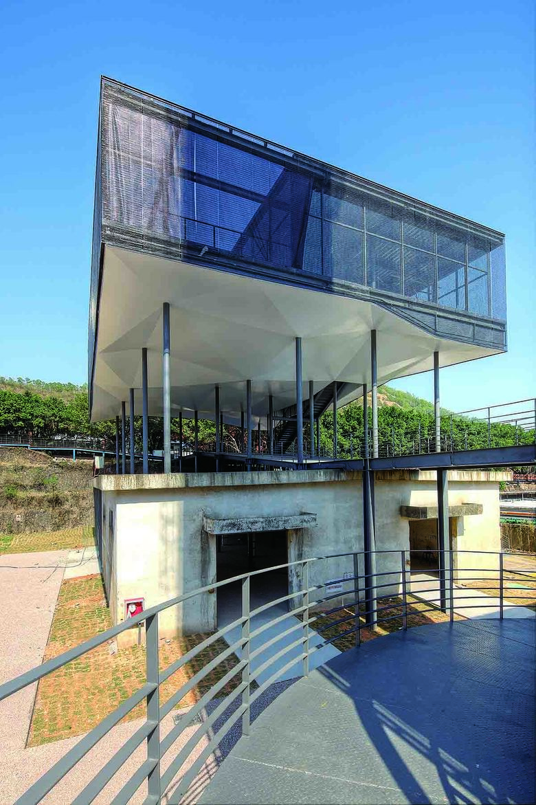 In the renovation of the main entrance, the old warehouse that was previously decided to pull down is retained to hopefully integrate with the new entrance form in an organic manner. The new volume is then supported by a new light steel structure grown from the old building with typical concrete frame structure. The new and the old, with similar volume and direct vertical shift, create interesting contrasts of times and technologies. At the meantime, a new public space casually derives from the crack between the new and the old, while the space between the ceiling with semi-reflective folded surface and the old building roof on the “6thfaçade”, as an area defining the “entrance” of the plant, naturally continues the unique chimney shape. The beveled entrance platform guides the pedestrian circulation to the spiral ramp surrounding the chimney downwards and eventually to the ground level of theplant, creating a transitional experience space for visitors. The night lighting in dynamic wavy pattern furthermore creates vague and mystical contrast on a twisted mirror between the new and the old spaces of the “6thfaçade”.