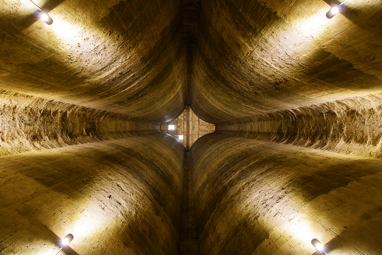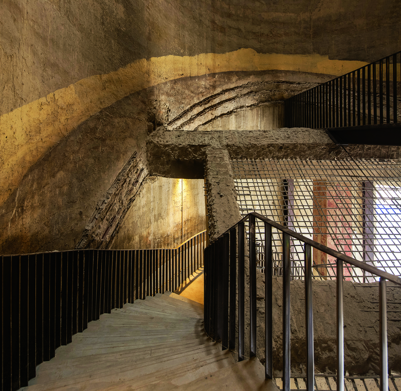 Undoubtedly silos are the most unique and important structures at site so their functionality becomes less important. Instead, the very original spatial attributes of this industrial legacy is reserved and restored as far as possible, and the solid appearance is retained to highlight the indoor experiences on time, space and texture. A unique visitor circulation is created on F2 of the ten silos. Each silo uses different lighting to foster different atmosphere and create diverse and overwhelming spiritual experiences.