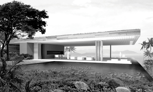 The architecture undulates harmoniously with the contours of the slopes and cliffs with nominal impact and primal elegance-synchronizing with the topography and the rhythms of the environment. Seamless and integral, the boundaries between man-made and nature, interior and exterior are deliberately blurred establishing maximum impact with minimum effort. Dramatically situated; yet, the residences, the essence of jungle eco-luxury are nestled into the landscape amidst endless pools and verdant flora-- where architecture heightens rather than distorts ones awareness of the context. Beauty, power and humility are accomplished from a profound understanding of flow, light and orientation with the topography-strengthening relationships to surrounding blue (water) and green (land) scapes. Simplicity and functionality are inherent to the entire design-- so that nothing distracts the eye from the ocean and jungle. Villas, cottages, condominium residences, and hotel accommodations with their soaring horizontal lines and cantilevered terraces/ pools are all about space, not status-about connection, not dislocation with the awe-inspiring planet we inhabit. Green roofs, deployed on all structures, provide perfect ideal thermal insulation, rain-water retention, and habitats for flora, fauna as well as human inhabitants.