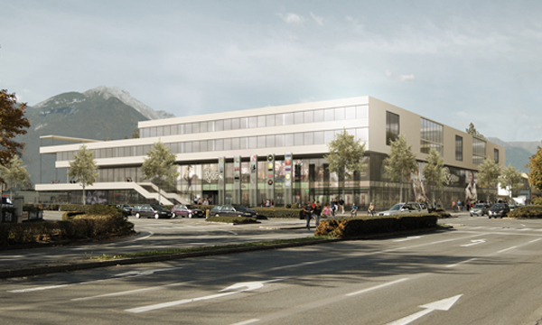Die Kombination von Nahversorgung und Bildung ist durchaus diskussionswürdig. Wir sehen die optimale zukunftsoffene Schule oben im Verhältnis zum quirligen Einkaufsgeschehen unten als eine gelungene Metapher: