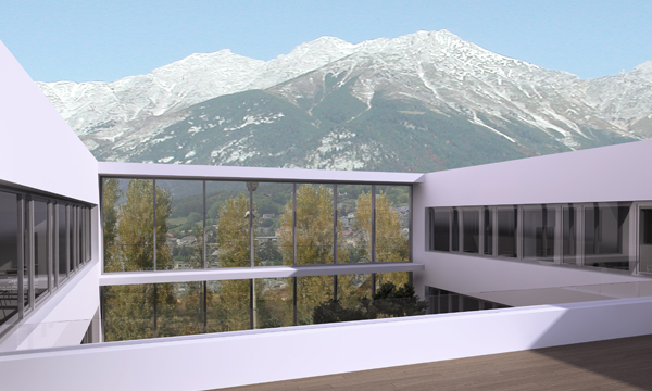 Die Benutzer der Schule sind im öffentlichen Raum sichtbar. Ihr Weg führt aber doch rasch weg vom Straßengeschehen, hebt sich klar vom Einkaufszentrum ab auf den 5 m höheren, morgenbeschienenen Vorplatz. Foyer, Garderobe und großzügige Freitreppe zelebrieren die Frei- und Pausenflächen und bieten eine spannendes Raumerlebnis.
