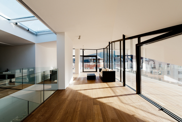 Mit dem Dachbodenausbau im Rahmen einer Stadthaussanierung wurde ein einzigartiges Raumerlebnis über den Dächern von Innsbruck geschaffen.
