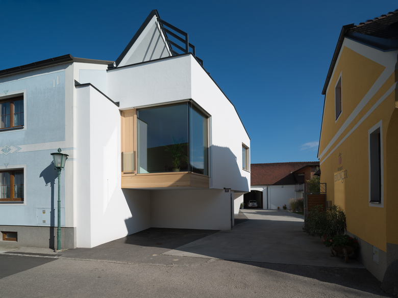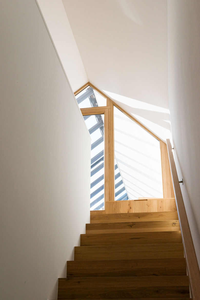 Und schlussendlich dann womöglich auch noch der Test aller Tests, die Blindbegehung: Vom Innenhof die Treppe hinauf, durch den Wohnbereich mit Küche und großer Tafel, weiter in den Schlafbereich, ins Bad, dann noch höher hinauf auf die beiden Terrassen und – die frische Luft aus den umliegenden Weingärten in die Lungen ziehend – hinein in die Sauna, dann wieder zurück und noch einmal alles von oben nach unten. Wo stockt es? wo sind Hürden? wo gar Barrieren? wo riecht es wie und warum? wie strömt es? wie betastet es sich? und unzählige weitere Kriterien, an die unsereiner nicht im Traume denkt.