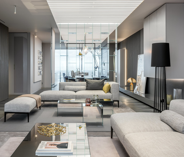 In einem der inneren Stadtbezirke Schanghais hat der Projektentwickler China Eagle Group (CEG) mit dem „CEG Schwarzwald“ einen innovativen und nachhaltigen Ansatz für urbanes Leben in der chinesischen Metropole geschaffen. In einem der entwickelten Wohntürme sind zwei Musterwohnungen entstanden, deren unterschiedlichen Farb-, Licht- und Materialwelten vielfältige Gestaltungsmöglichkeiten aufzeigen. Im Apartment „Shades of Grey“ eröffnet sich dem Besucher eine ruhige und elegante Lebenswelt auf 250 qm, im 27. Stock.