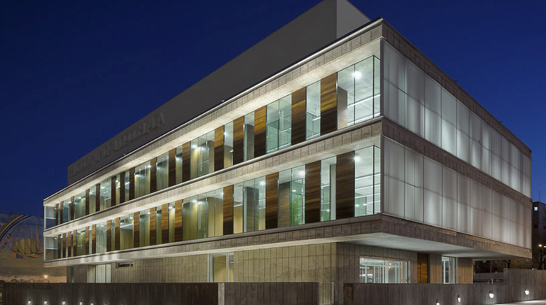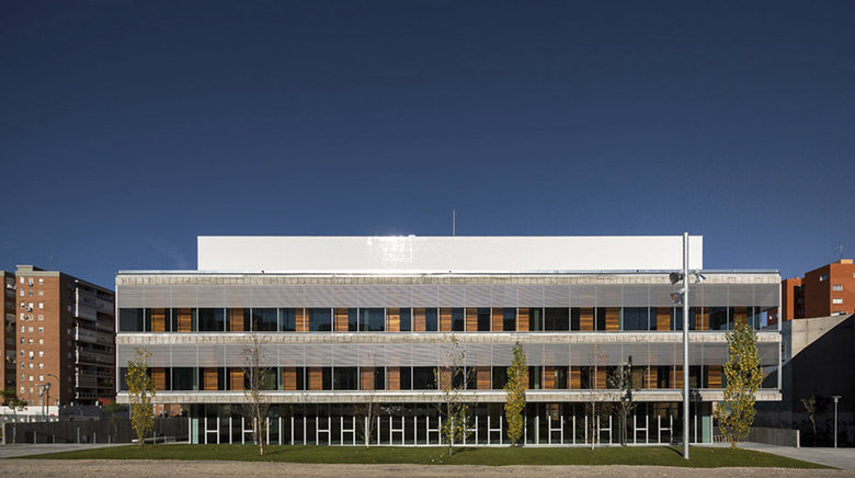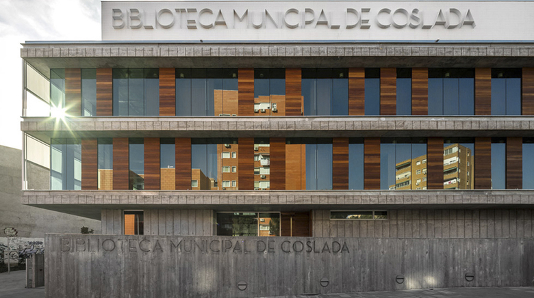 Esta biblioteca está localizada en una zona urbana consolidada al este de Madrid. La densidad del programa obliga a proponer un volumen compacto, retranqueado en planta baja, y que, no obstante, ha sido perforado por varios patios que, luego, se han inundado de vegetación autóctona.