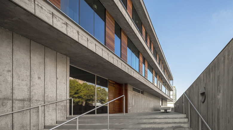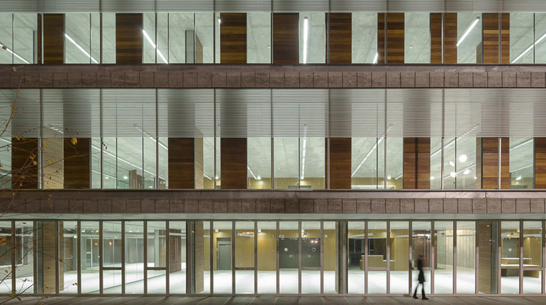 El volumen se divide en dos franjas: la dinámica y la estática. La primera se localiza en la zona sur del edificio, que se plantea como un espacio abierto que puede usarse según las necesidades de los usuarios. Esta zona da la cara hacia la tranquilidad de un parque, con una fachada que combina módulos de madera y transparentes; estas piezas se pueden cambiar fácilmente para adaptarse a los usos internos.
