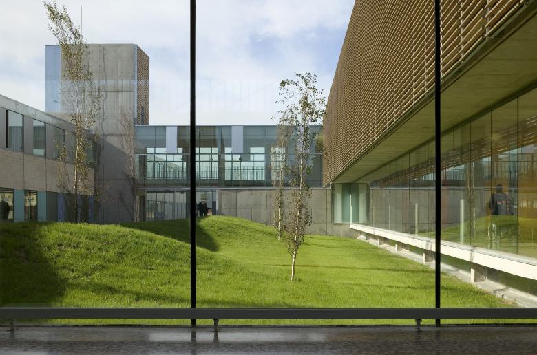 El Hospital Santa Caterina y el Centro de Atención a Mayores se estructuran en pabellones de baja altura dispuestos en torno a patios ajardinados, lo que favorece la entrada de luz natural, una orientación clara y flexibilidad para futuras adaptaciones. Estas estructuras abiertas promueven el confort, los beneficios terapéuticos y una circulación fluida para pacientes y personal.