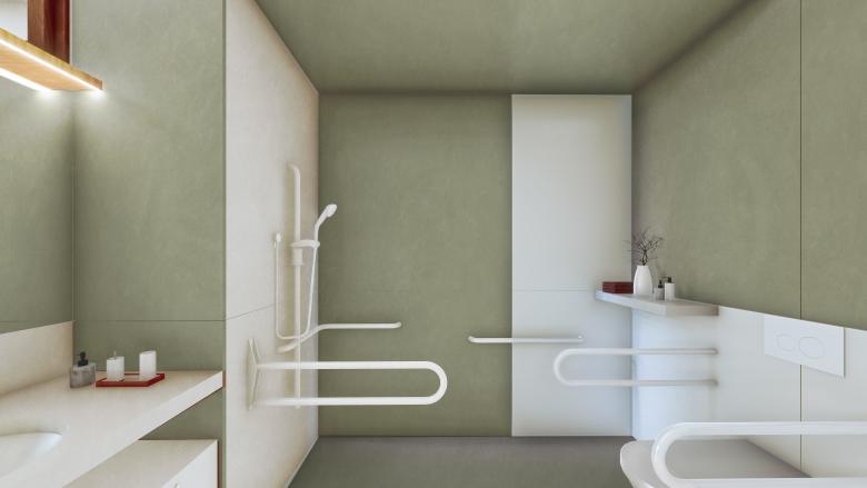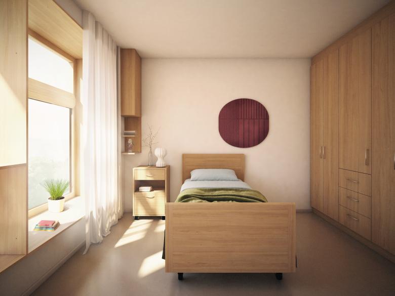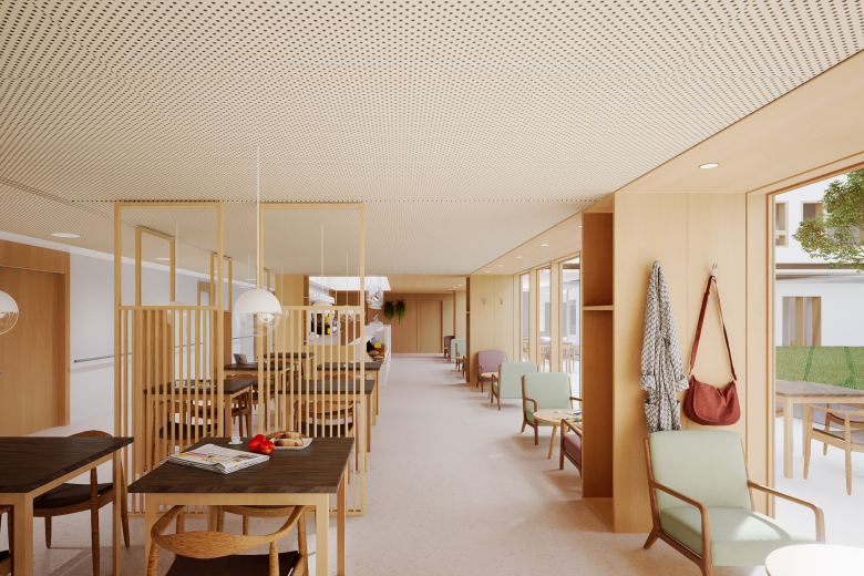 La residencia sigue los principios del modelo KDA (Kuratorium Deutsche Altershilfe) de quinta generación, que combina vida privada, en comunidad y en sociedad. El objetivo es crear un entorno seguro y normalizado, con atención personalizada y espacios flexibles que permiten aislar rápidamente a pacientes en caso de emergencia sanitaria.