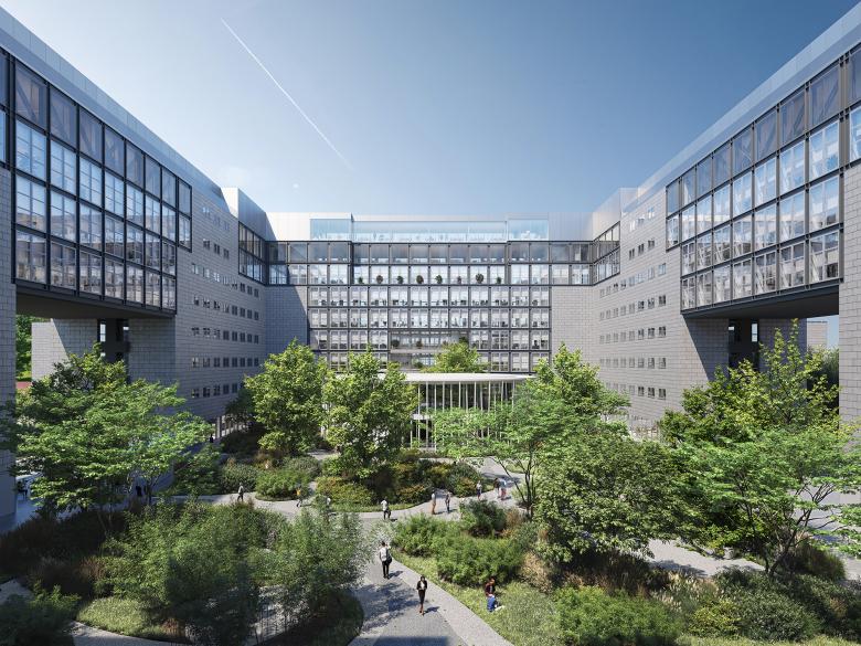 The beating heart of the project is indeed the space at the center of the building: a point of arrival and departure, a meeting and exchange place, the plaza will be available to tenants and neighborhood users, who will benefit from collective services including cafes and restaurants, bike shops, bookshops, co-working, as well as, in the basement, a 200-seat auditorium, a gym, a bike storage room with lockers and showers, and a parking lot equipped with electric charging stations. At the center of the plaza will rise the new Pavilion, a futuristic multifunctional space with a distinctive design.