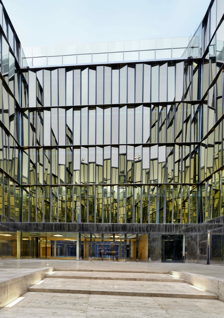 The Quattro Corti business centre is located in the historic area of Saint Petersburg, in the immediate vicinity of St. Isaac’s cathedral. The project called for the realization of a contemporary building while maintaining the historic façades of the two buildings that previously occupied the site. Within the volume defined by these limits, four courts were created to illuminate the interior spaces and to serve as gathering places capable of hosting art installations, exhibitions and other public activities. The façades of these courts are composed of reflective coloured glass panels – gold, green, azure and white – set at different angles. The result is the fracturing of the overall reflection, which generates a kaleidoscopic effect that is enlivened by the natural variations in the quantity and intensity of sunlight. The complex is mainly dedicated to Gazprom Neft offices, but also hosts complementary activities such as a restaurant.