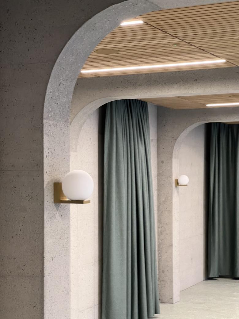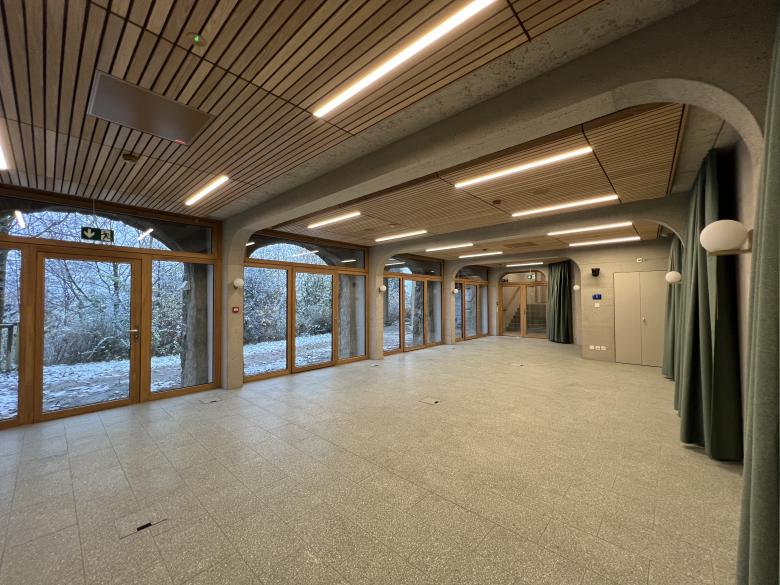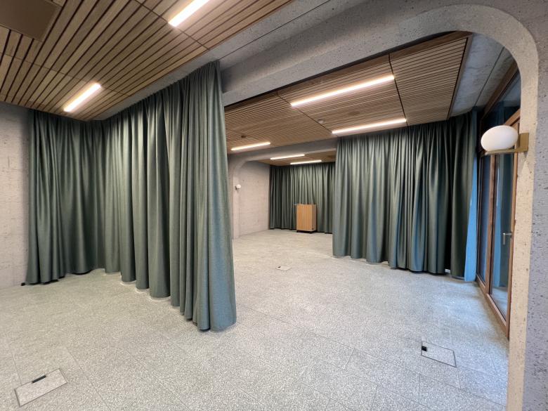 Unter dem Parkplatz, hinter einer bestehenden Geländemauer, wird ein neuer Seminarraum erstellt. Dadurch wird einerseits die einsturzgefährdete Mauer gesichert und die Nutzer erhalten einen multifunktional nutzbaren Raum.