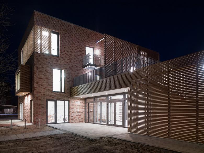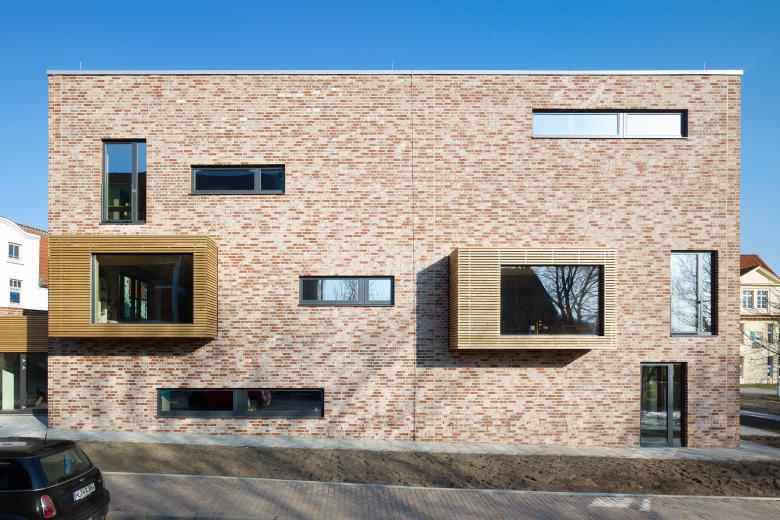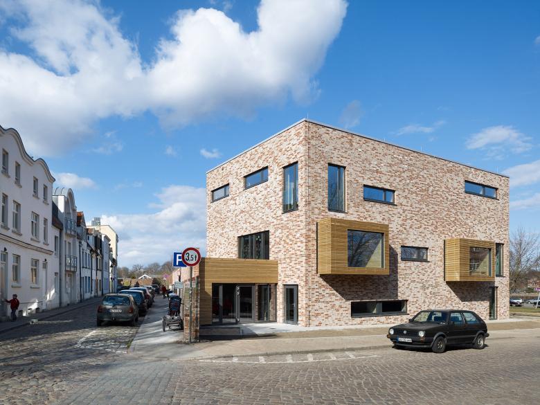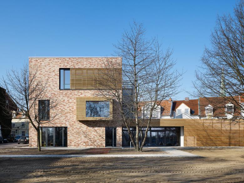 Das vorhandene Material der Stadtmauer in roten Ziegeln wird aufgegriffen und setzt einen kräftigen Endpunkt am Altstadteingang.