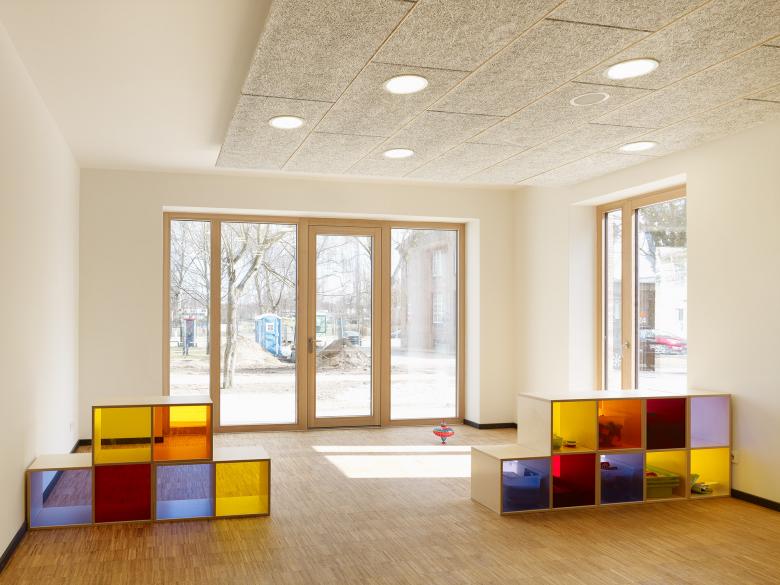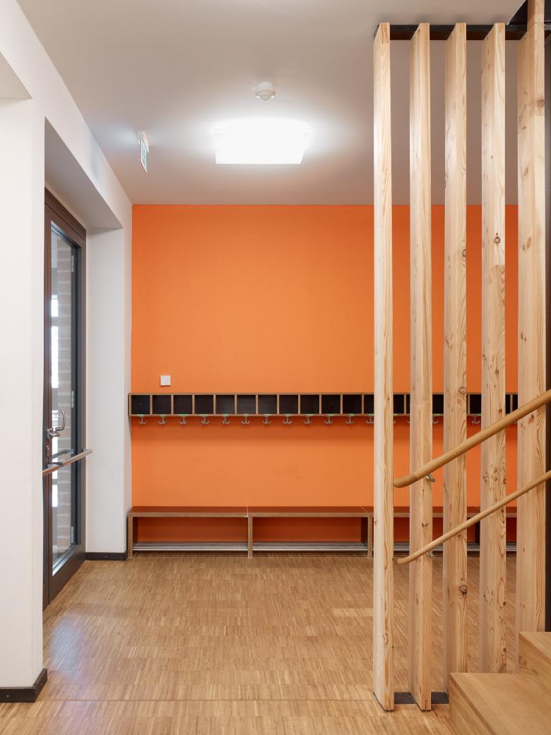 Die Kindertageseinrichtung der Musik- und Kunstschule ist als dreigeschossiger, schlanker Baukörper an der Stelle eines historischen Stadttores als Bestandteil der Stadtmauer entstanden. Durch die Fortführung der vorhandenen Mauer begleitenden Bebauung und der für Lübeck typischen Verschneidung mit einem hohen Endpunkt wird das historische Thema „Mauer und Gebäude“ aufgegriffen und neu interpretiert.