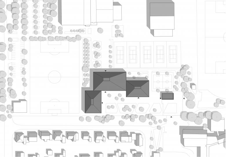 Der Schuleintritt ist ein einschneidender Moment der Kindheit– alles ist neu, die Aufregung und die Erwartungen sind groß. Von nun an ist die Schule im besten Fall ein zweites Zuhause, das nicht nur Wissen vermittelt, sondern auch eine behütete Umgebung schafft. Unser Neubau der vierzügigen Grundschule in Oststeinbek mit Ganztagsbereich und Mensa folgt diesem Leitgedanken. An ein zentrales Gemeinschaftsgebäude mit Aula, Freizeitbereich und Verwaltung, schließen sich zwei Klassenhäuser an. Pro Geschoss ist hier eine Jahrgangsstufe vereint. Je eine offene Lernlandschaft lädt zum Austausch und Verweilen ein, direkte Zugänge führen ins Freie.