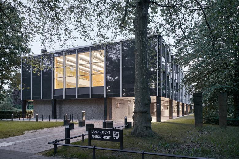 Die Architektur von Gerichten steht in einem besonderen Spannungsfeld: Sie muss repräsentativ sowie robust und beständig sein, ebenso einladend wie sicher. Die Gebäude des Gerichts aus dem Jahr 1962 von Atmer und Marlow spannen gestalterisch diesen Bogen, entsprachen aber nicht mehr den heutigen technischen und funktionalen Ansprüchen.