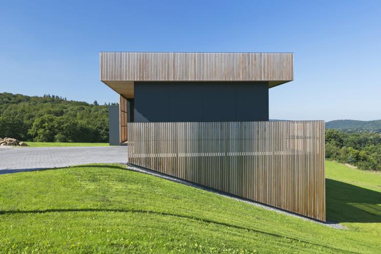 Première construction du lotissement dont elle fait partie, cette habitation unifamiliale juit d’une situation géographique avantageuse, à la frontière entre ville et forêt. Implantée sur les hauteurs d’Eupen, la parcelle, accessible depuis une route secondaire en cul de sac, borde en effet le massif forestier du Hertogenwald et domine la vallée de la Vesdre. Ceci lui offre des vues riches et diversifiées sur le paysage proche et lointain. L’éloignement du lotissement par rapport à la voirie principale ajoute à cela la sertitude d’une atmosphère paisible.
