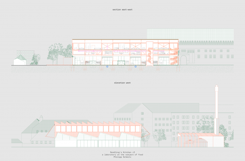 Sendling's Kitchen develops a new typology. It combines the wholesale market with cooking, teaching and exhibition uses. It creates an experimental space for research, community and learning through infrastructure, construction and circular processes in the food industry.