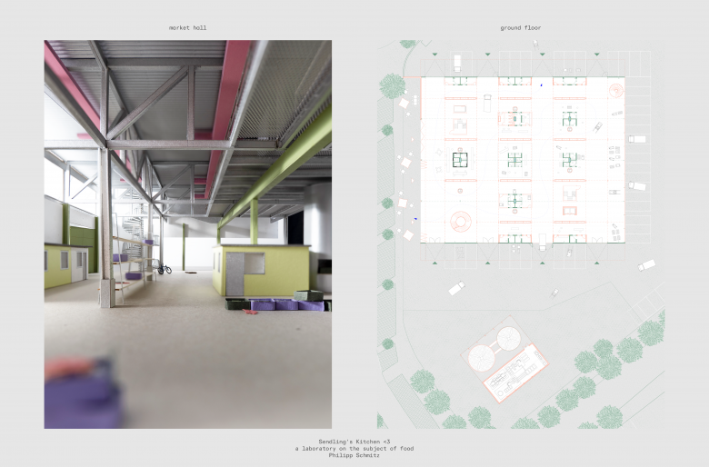 The existing local functions of the market hall are to be integrated and a laboratory for entrepreneurs, researchers and Sendling residents is to be created. How can this service architecture promote productivity in urban areas? An urban use type is to be designed that explores a new practice that is entirely in the spirit of the rural-urban production exchange.