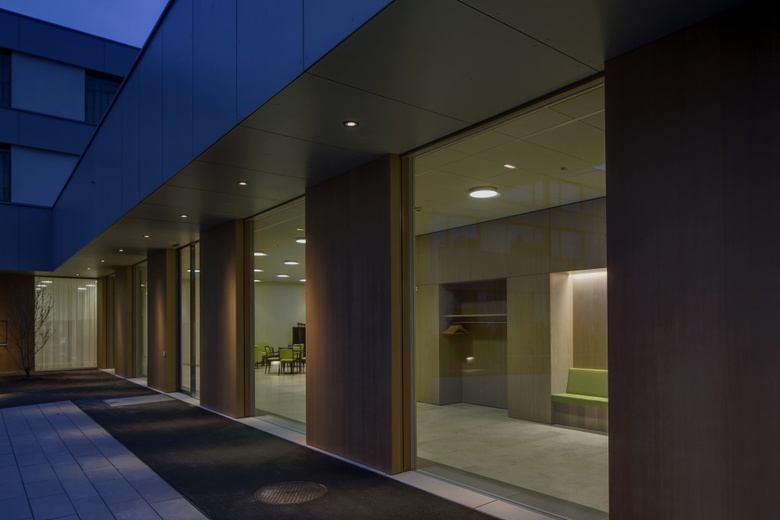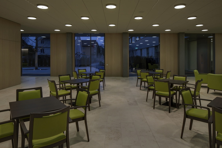 Neubau, Seniorenzentrum mit öffentlichem Gastrobereich, Pflege- und Verwaltungs- sowie Wohntrakt.