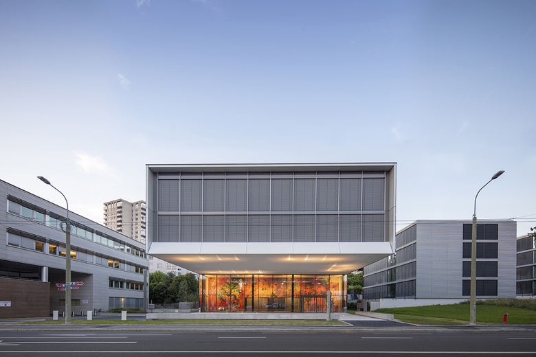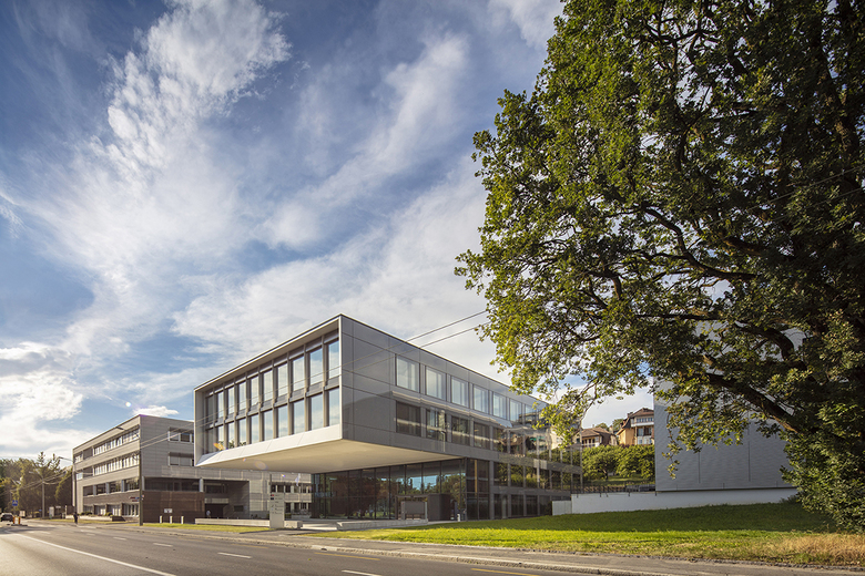 Firstly, the wish to be volumetrically west-aligned with the building which our firm designed in the 1990s as the administrative headquarters for Golay Buchel and, secondly, east-aligned, to maintain the perspective over the premises of the Maison du Sport International (MSI).