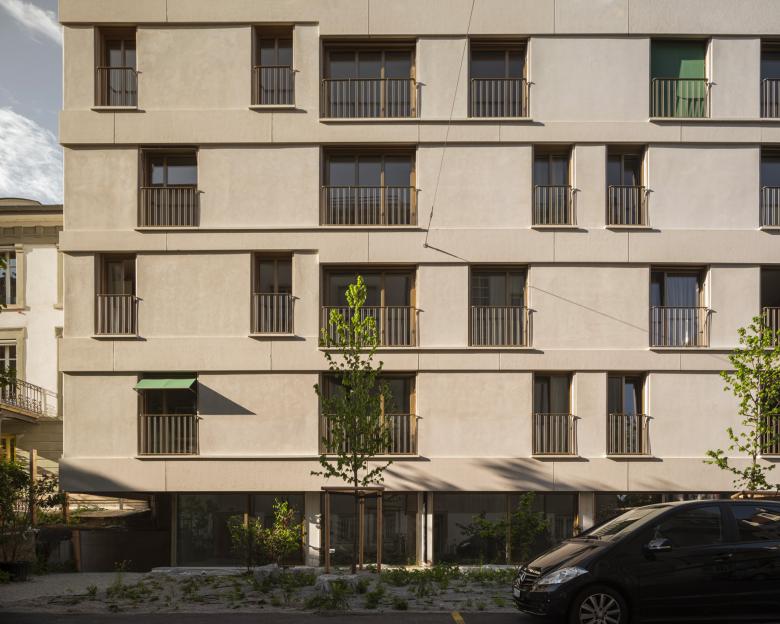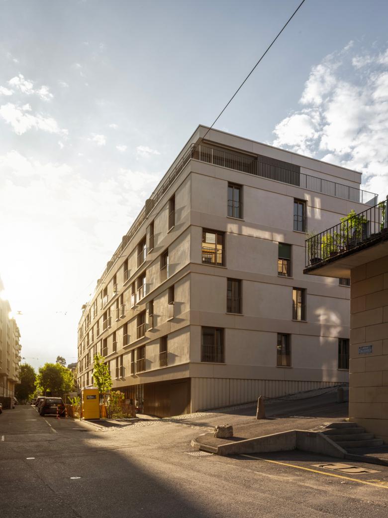 Situé au cœur de Lausanne, dans un quartier dense et historiquement riche, le nouvel immeuble de logement abrite 40 appartements de 2,5 à 4,5 pièces ainsi que les locaux de la Première Église du Christ, Scientiste, l’ancien propriétaire du site. Dans un contexte offrant peu de dégagements visuels au sud et un apport en lumière naturelle mesuré, un des principaux défis de la démarche consiste à mettre à disposition des habitants des espaces de vie attrayants et de qualité. L’immeuble adopte un langage architectural sobre et raffiné, intégré aux ensembles historiques voisins et respectant la mémoire de l'ancienne église présente sur ce site.