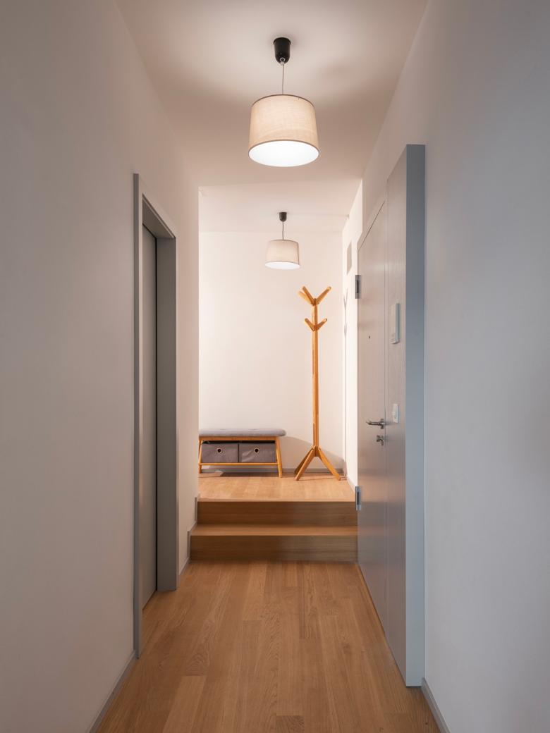 L'accès aux logements sur la face nord au niveau du 1er étage, permet à l'église d'avoir un flux totalement indépendant par son accès du côté sud au rez-de-chaussée. Les cages d'escalier aux finitions épurées et de qualité — sol en terrazzo, escaliers en béton préfabriquées clair et portes en chêne — bénéficient de la lumière naturelle reflétée à travers une baie vitrée de la loggia.