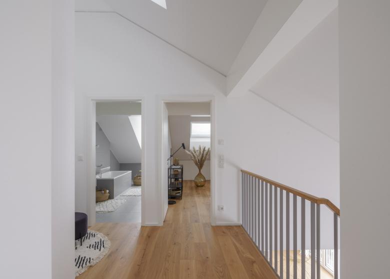 Die zurückgesetzten Eingangsbereiche sind repräsentativ ausgestaltet.