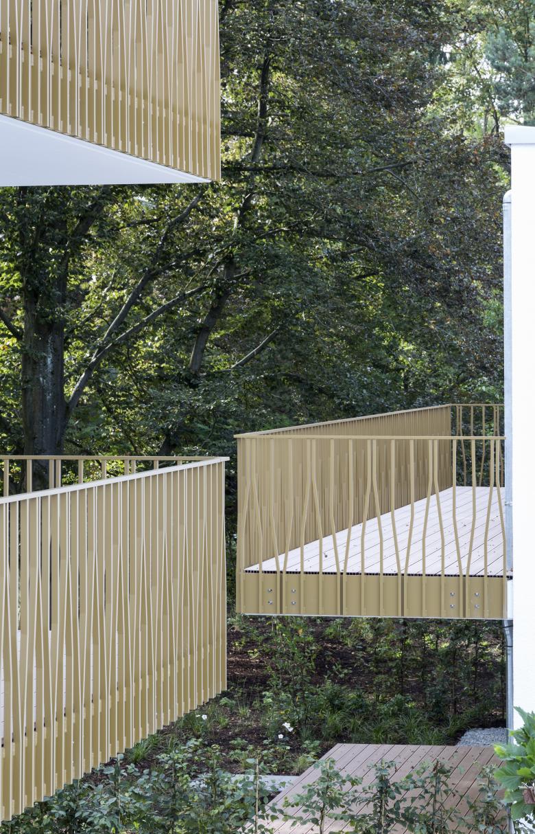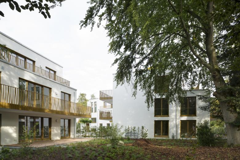 Die beiden neuen Wohngebäude liegen eingebettet zwischen großen Bäumen in unmittelbarer Nachbarschaft des Nymphenburger Schloßparks. Eine Besonderheit des Grundstückes sind mehrere einzigartige alte und große Bäume, welche bei der Einfügung der Baukörper in enger Abstimmung mit der Unteren Naturschutzbehörde berücksichtigt wurden. Die Bäume sind wesentlicher Teil des Gesamtensembles. Insgesamt sind zwei Gebäude mit jeweils 5 beziehungsweise 13 großzügigen und luxuriösen Wohnungen entstanden.