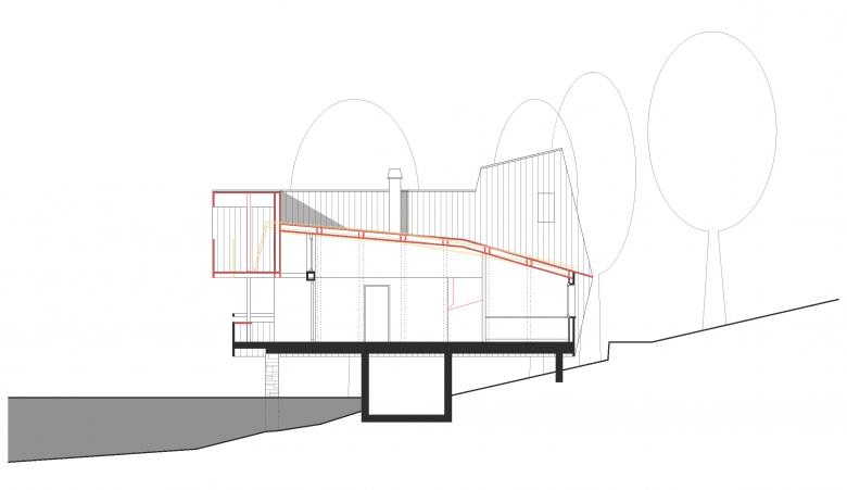 Das über 20-jährige Holzhaus am Weiher auf der Hochebene beim Hameua de la Longue Raie soll durch einen einfachen Eingriff erweitert werden. Ein turmartiger Aufbau ermöglicht den Rückzug in die Baumkronen. Eine neue Terrasse als Oberdeck bietet einen freien Blick über die Weite des Plateau der „Mille Étangs“.