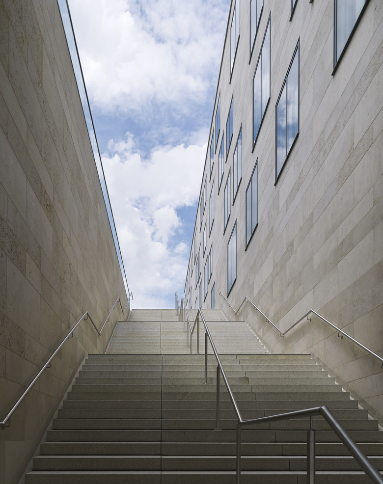 Mit der Neuordnung des Quartiers wird die Intention verfolgt, die jeweiligen Identitäten und Qualitäten der umliegenden Räume herauszuarbeiten und städtebaulich zu stärken. Die programmatischen Vorgaben bedingen eine hybride dreiteilige Baukörperkonstellation, bestehend aus Wettkampfsporthalle, Einzelhandelsflächen und einem Bürohaus, deren spezifische Ausformulierungen sich aus stadträumlichen Abhängigkeiten und funktionalen Zusammenhängen ergeben.