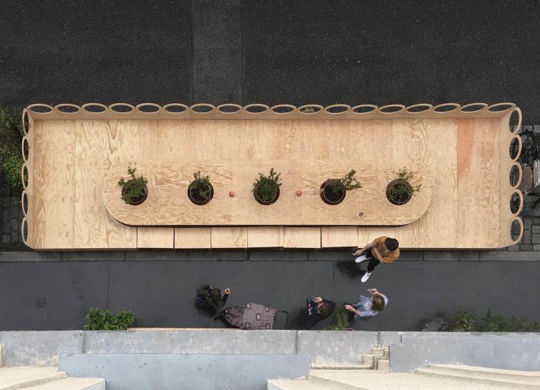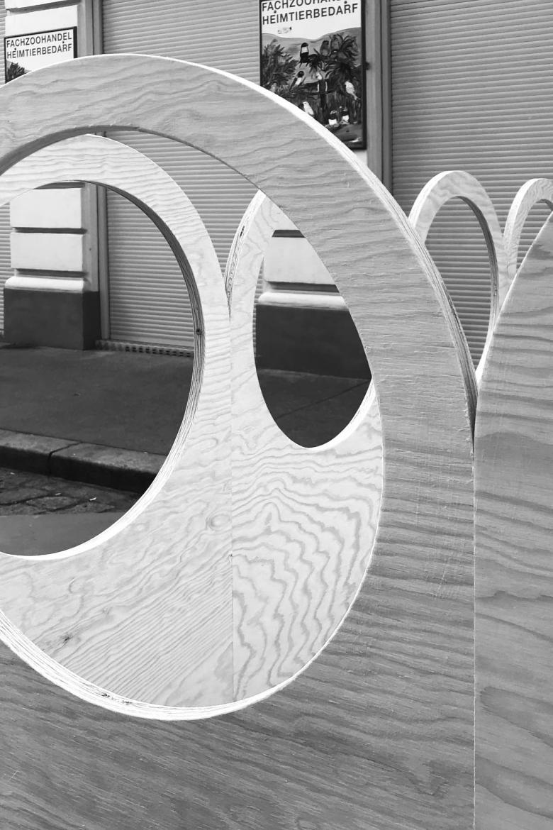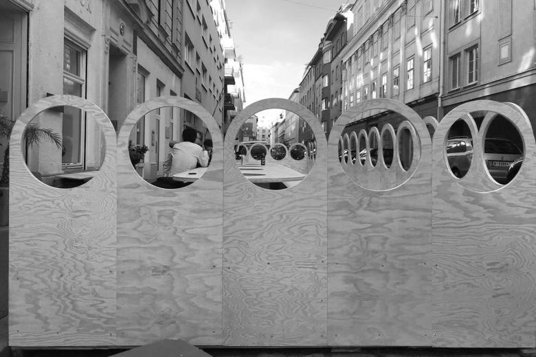 Für den Straßenraum von Wien entwickelten wir gemeinsam mit der Schweizer Künstlerin Nives Widauer eine kommunikative – und dennoch geschützte – Installation für Begegnungen, Gespräche und performative Events unter freiem Himmel. Thema ist die Geschichte und Symbolik des Granatapfels, der für den Dialog zwischen den Kulturen steht.