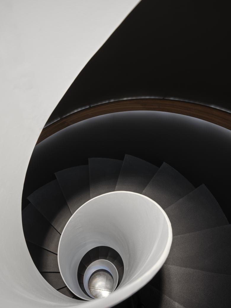 Eingefügt wurden zwei stählerne, zylindrische Spindeltreppen mit jeweils 50 Stufen, die je zwölf Meter hoch sind und eine Verbindung zwischen Alt und Neu schaffen.