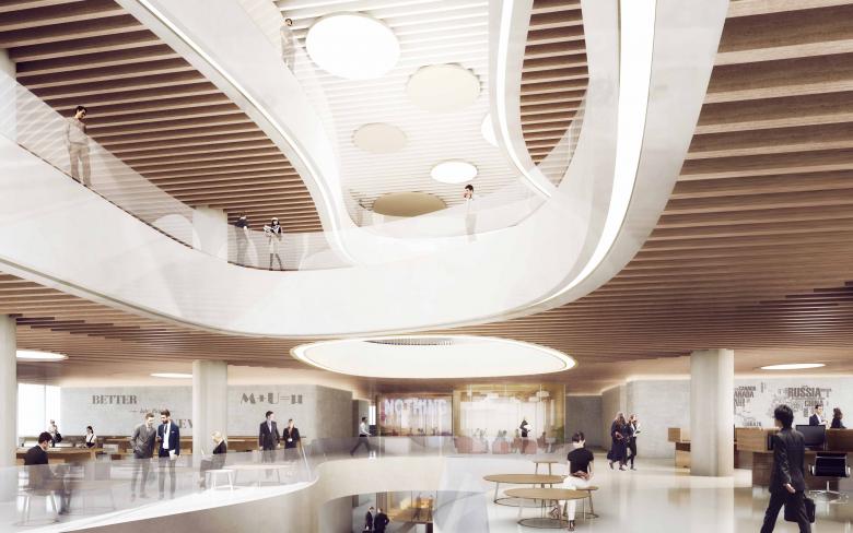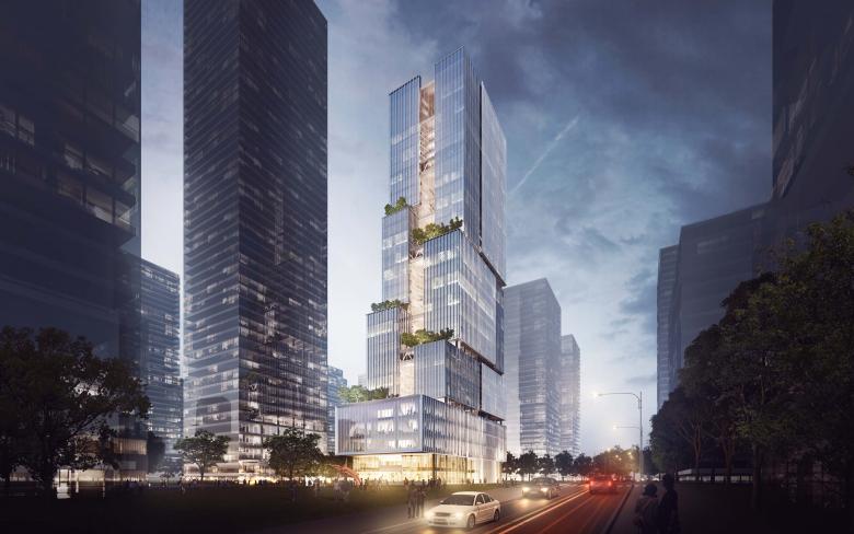 Nun hat das Büro erneut einen Wettbewerb für ein Gebäude in Qianhai für sich entschieden. Der 180 Meter hohe Büroturm zeigt sich nach außen hin mit einer klaren Fassade. Bei der Gestaltung der Innenräume bilden wiederum Dynamik und Kommunikation die zentralen Elemente. Diese spiegeln das Wesen des jungen und aufstrebenden Finanzdienstleisters MUCFC wider, ein Tochterunternehmen von China Merchants Bank und China Unicom, das seinen Hauptsitz im neuen Gebäude haben wird.