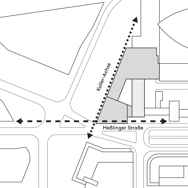 Der Neubau erweitert den bestehenden, sanierungsbedürftigen Firmensitz aus dem Jahr 1961 in westlicher Richtung. Mit der Erweiterung rückt das Gebäude vor in die Straßenfluchten von Heßlinger Straße und Porschestraße (Koller-Achse). Verbindendes Element zwischen Bestand und Erweiterung ist ein begrünter Innenhof.