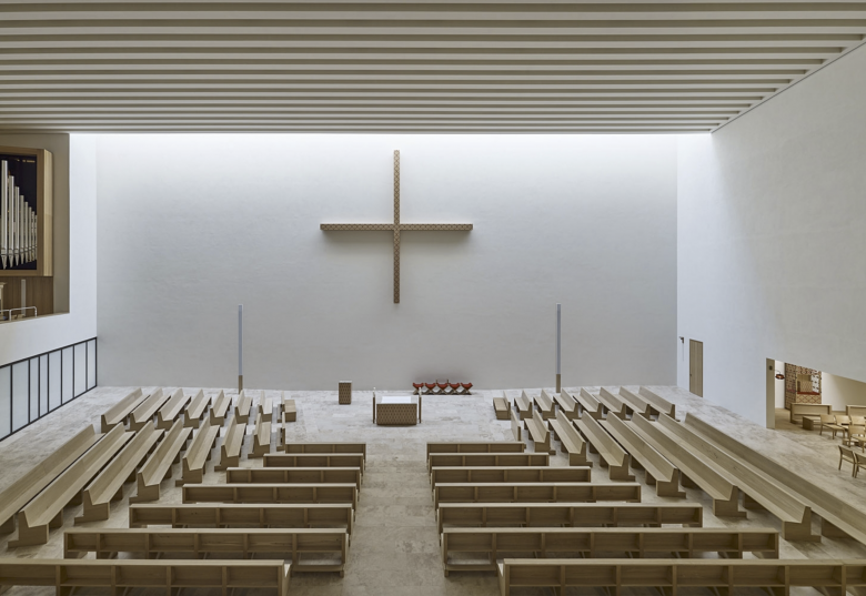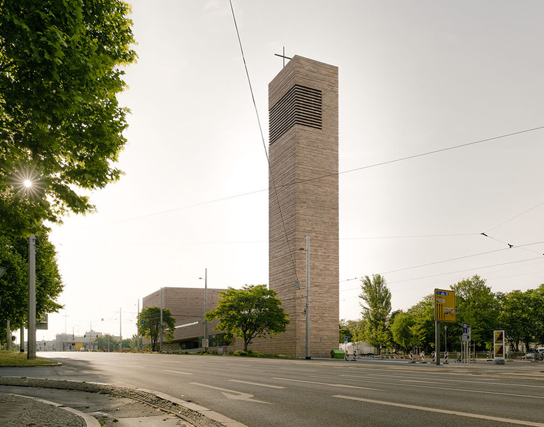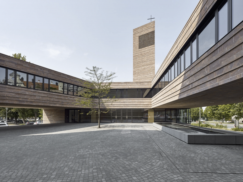 Die Kirchweihe am 9. Mai 2015 beendet eine über siebzig Jahre andauernde Odyssee der Leipziger Propsteigemeinde. Mit dem Neubau ist St. Trinitatis ins Zentrum der Stadt zurückgekehrt. Es war uns als Architekten ein Anliegen, die neue Propsteikirche aus dem Organismus der umgebenden Stadt heraus zu entwickeln. Ihre Präsenz erhält sie durch den hohen Kirchenbaukörper und den Kirchturm, vor allem aber durch die einladende Offenheit des Pfarrhofs. Mit seiner Hülle aus gemauertem Rochlitzer Porphyr bekennt sich der Bau zu Region und Tradition.