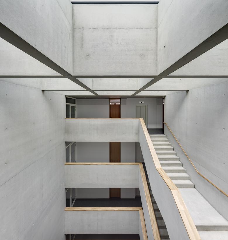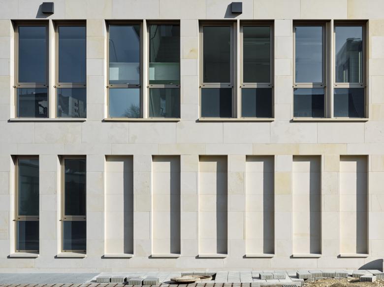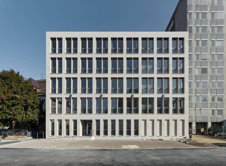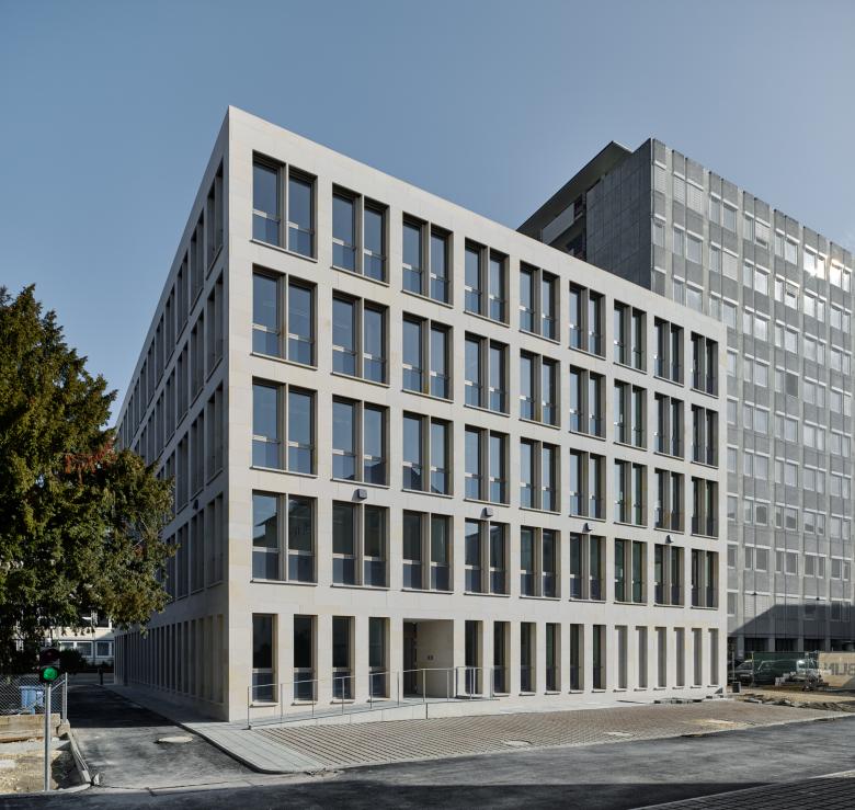 Mit den Neubauten der Justiz in unmittelbarer Nachbarschaft zum historischen Gerichtsgebäude an der Olgastraße tut sich die Chance auf, nicht nur funktionale Synergien zu verstärken, sondern gleichzeitig an einer hochsensiblen Stelle der Stadt, dem Übergang von Altstadt zu Neustadt, ein städtebauliches Bindeglied entstehen zu lassen, welches einen maßgeblichen Impuls zu einer positiven Weiterentwicklung an dieser Nahtstelle geben kann. Die Frage nach dem Charakter dieses städtebaulichen Bindegliedes zwischen rechtwinkligem Grundriss der Neustadt und den repräsentativen Gebäuden auf der Altstadtseite beantwortet der Entwurf nicht mit einer weiteren Verdichtung von Bebauung auf der Neustadtseite sondern mit Raum, genauer gesagt mit einem Freiraum, der Neubauten und Bestand in Beziehung zueinander stellt.