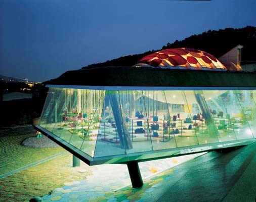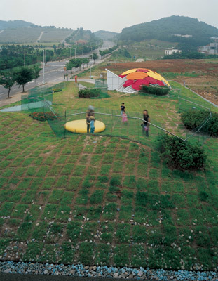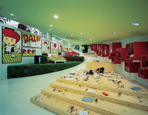 Dalki is a cartoon character invented to market clothes and other products for children and teenagers.  She is an imaginary girl who lives in a garden with her friends.  Dalki Theme park is a building where these imaginary characters interact with human visitors in a real, physical setting.  The space accommodates shopping, playing, eating and lounging as well as exhibits dealing with scale, nature and the Dalki characters.