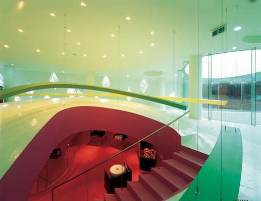 The building defines three zones vertically. The open ground level is a scaleless artificial garden. Different program areas spread throughout the raised interior space encourage mixing between programs and openness.  A garden and lounge on the roof extend the natural landscape, referring to four lush surrounding hills.  Rather than abstracting from nature, the building is a synthetic hyper-representation of nature (meta-real): mimicking while questioning the nature of nature.  Merging these levels into each other and into the site creates a seamless transition between zones and between building and site.