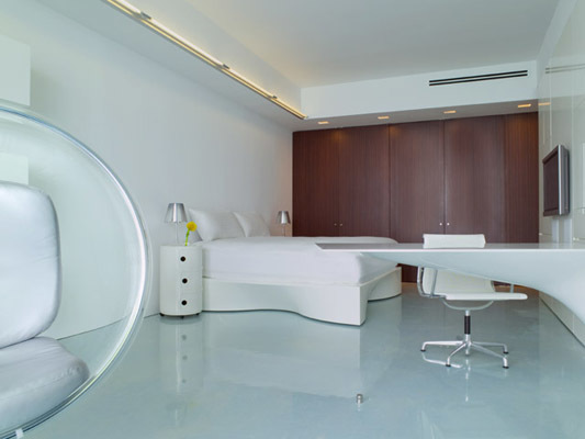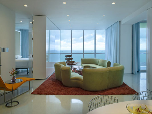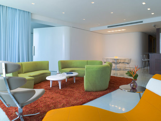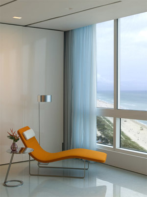 This weekend getaway located in South Beach, Miami was designed for a young couple. They wanted a place that was very “Miami”. As a vacation home, the apartment is occupied for a few days at a time by the client and occasionally another guest. The renovation reflects the sporadic, temporary occupation, maximizes the ocean views, and creates a relaxed, changeable, informal, open atmosphere.