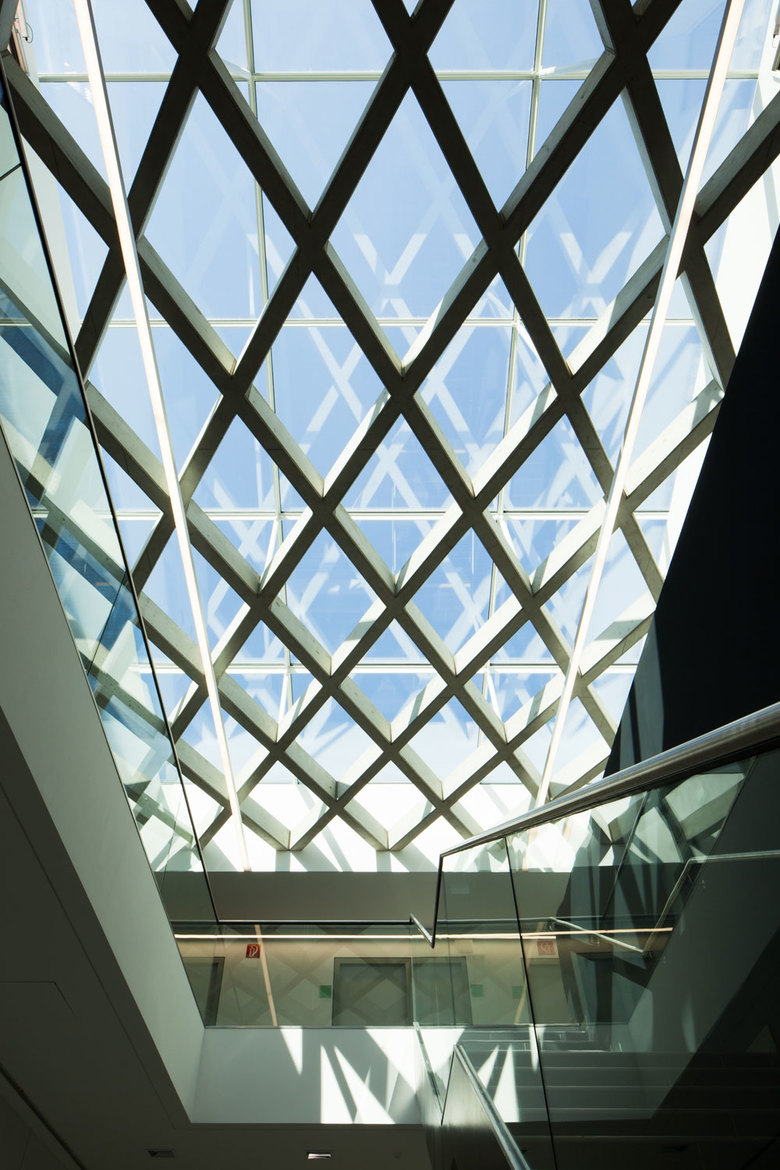 Zwei Funktionen, die Garage und der zweigeschoßige Personaltrakt, zusammengefasst unter einem Dach bilden einen klar ablesbaren Baukörper. Dessen Aufteilung ist eindeutig getrennt in Mannschaftstrakt und Garage . Durch diese Trennung sind die einzelnen Klimazonen klar ablesbar und auch konstruktiv umsetzbar. Erschlossen wird die Rettungsstation über den Fassadenrücksprung und in weiterer Folge über das Atrium, einem lichtdurchfluteten Innenraum, der die weitere vertikale Erschließung ins erste Obergeschoß signalisiert.