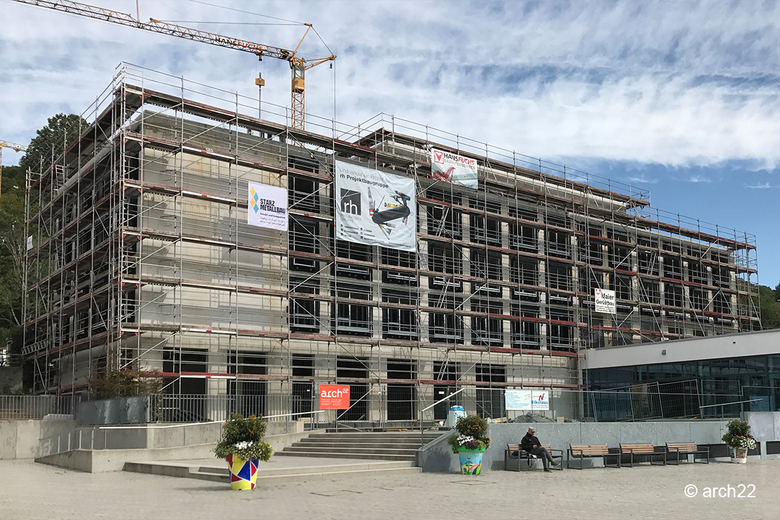 Durch den Neubau des Hotels entsteht ein Gebäude, das neben dem Rathaus Oberkochen respektvoll aber selbstbewusst existiert und mit den vorhandenen Bausteinen wieder ein Ensemble bildet. Seit Beginn der Entwurfsplanung arbeitet str.ucture zusammen mit arch22 an einem gemeinsamen Revit Building Information Model (BIM), wodurch das Architekturmodell und das Tragwerksmodell stets auf dem aktuellsten Stand sind. Str.ucture unterstützt hier die Architekten nicht nur bei der Tragwerksplanung sondern auch bei der Pflege des gemeinsamen Modells und BIM Administration. Das Hybridtragwerk in Stahlbetonskelettbauweise mit tragenden Mauerwerksaußenwänden garantiert ein hohes Maß an Flexibilität. Des Weiteren wurde beim Tragwerksentwurf ein besonderer Schwerpunkt auf die Wirtschaftlichkeit gelegt. So wird die Tiefgarage in offener Bauweise mit Pflasterfahrbelag erstellt, was eine aufwändig beschichtete Bodenplatte erspart. Die Hangsicherungsmaßnahme wird zur Gründung des Hotels mit herangezogen.