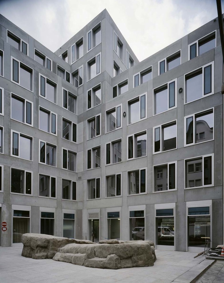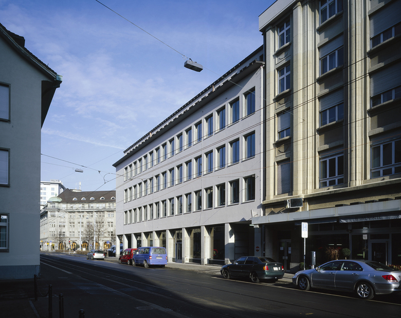 Das Projekt «UBS Grünenhof» kombiniert unweit von Bahnhofstrasse und Paradeplatz mitten in der Stadt Zürich die Themen Instandsetzung, Denkmalpflege und Neubau. Für die Gebäudeteile Grünenhof Ost, Süd und West war eine Totalsanierung vorgesehen, der partielle Ersatzneubau «Delphin» sollte das Ensemble komplettieren. Mit seiner präzisen Höhenstaffelung und der reduzierten Materialisierung fügt er sich diskret zwischen die beiden bestehenden Gebäude ein, gibt dem Block aber dennoch ein neues Gesicht. Auch die – denkmalgeschützte – Gebäudehülle des Bestands aus den 1940er-Jahren unterzog man einer Erneuerung. Dabei galt es, die energetischen Ziele in Einklang mit den denkmalpflegerischen Vorgaben der Stadt Zürich zu bringen, was mit einer Innendämmung gelang. Besondere Anforderungen stellte die komplexe Gebäudetechnik: Das Grünenhof-Areal ist kein autonomes Ensemble, sondern mit anderen, zumeist bankeigenen Liegenschaften verbunden. So beliefern die unterirdisch installierten Heizungs- und Kühlanlagen auch umliegende UBS-Gebäude mit Wärme und Kälte. Die Sicherstellung eines kontinuierlichen Betriebs während der Bauarbeiten war daher essenziell. In einem Zeitraum von knapp drei Jahren entstanden auf nahezu 4000 m2 Grundfläche neue Büro- und Geschäftsflächen von 14‘000 m2. Der renovierte und erweiterte Grünenhof vereint rund 900 Arbeitsplätze, ein Konferenzzentrum und exklusive Ladenflächen unter einem Dach.