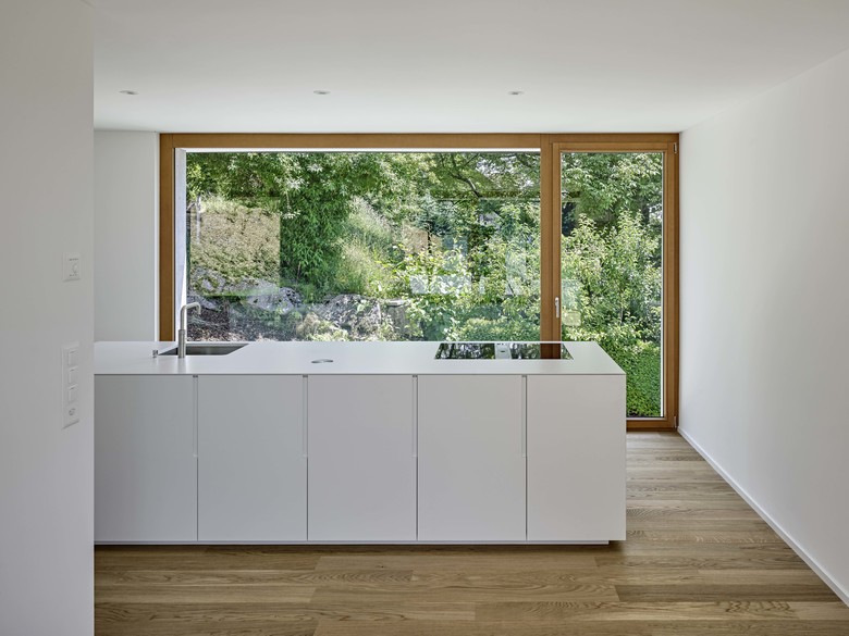 Die Wohnhäuser verfügen über 5 ½-6 ½ Zimmer, aufgeteilt in Wohnräume auf Gartenniveau und Individualzimmer im Obergeschoss. Das Wohngeschoss der unteren Häuser wird zusätzlich mit einem Atrium nach Osten hin, welches Sichtschutz und Raumerweiterung bildet, erweitert.